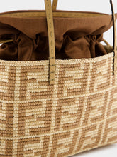 The Beige FF raffia crochet shopper is a timeless and functional piece, first introduced in 1997 alongside the iconic Baguette. Crafted from woven raffia sourced in Madagascar, this bag showcases an intricate crochet pattern forming the signature Fendi FF motif. It features an unlined internal compartment with a removable brown linen pouch and a beige calfskin drawstring. The elegant calfskin handles, adorned with hand-stitched macro topstitching, allow for both hand and shoulder carry. A refined fusion of artisanal craftsmanship and practicality, this Italian-made bag epitomizes luxury.