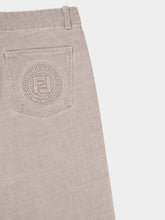 These wide-leg jeans by Fendi offer a sophisticated update to classic denim through a refined beige hue and tailored silhouette. Crafted from high-quality cotton, the design features a flattering high-rise waist and fluid wide legs that evoke relaxed elegance. Subtle Fendi Roma branding adds a signature touch, while the neutral tone ensures versatile styling from daywear to resort looks. A polished essential with understated luxury appeal.