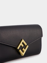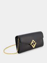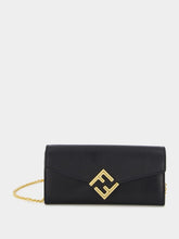 FF Diamonds Continental Wallet with Chain, featuring a captivating geometric flap adorned with the iconic diagonal FF logo. This wallet offers versatility with a detachable fine chain strap. Inside, experience ultimate organization with two gusseted compartments, a zip pocket, two flat pockets, and ten card slots. Crafted from premium grey leather with a dove grey flap, this piece exudes sophistication. The gold-finish metalware adds a touch of luxury to this fashion-forward accessory.