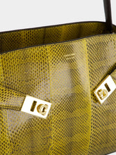 This small Hug shoulder bag by Ferragamo is exquisitely crafted in luxurious ginger-toned Ayers snake leather. Featuring the brand’s signature architectural silhouette, it is adorned with gold-tone twist-lock hardware and an adjustable leather strap for versatile styling. The compact structure and exotic finish offer a bold, elegant statement—perfect for adding a touch of luxury to both day and evening looks.