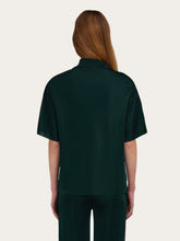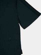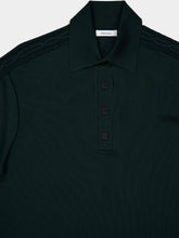 This Moss Green Knitted Polo Shirt by Ferragamo revisits a classic silhouette with refined simplicity. Made in Italy from 100% viscose, the fabric offers a fluid drape and smooth texture, creating a modern, clean-cut profile. It features short sleeves, a button-up collar, asymmetrical side slits, and a tonal embroidered F for a discreet signature finish—ideal for polished yet relaxed summer dressing.