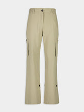 These Sand Cargo Trousers by Ferragamo reinterpret a utilitarian classic with elevated tailoring. Made in Italy from a refined silk, viscose, and cotton blend, they feature a clean, high-waisted silhouette with concealed button and hook fastening. The wide leg is complemented by oversized cargo pockets and buttoned hems, offering a sophisticated yet functional edge to contemporary wardrobes.