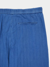 The Rocha Denim Trousers in denim blue combine contemporary style with everyday comfort. Crafted from herringbone cotton woven with a twill structure to resemble denim, they feature a wide-leg design, relaxed fit, and an elasticated waist with an adjustable drawstring. Complete with slanted side pockets, a back pocket, and a zip fly, these trousers are perfect for a modern casual look.