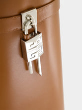 These Shark Lock boots by Givenchy are crafted in smooth tan calfskin leather, blending architectural design with refined elegance. Featuring an almond toe and a hidden wedge heel, they are accented by a signature leather band with silver-finish 4G padlocks and a Givenchy metal clasp. A bold statement piece with a sleek slip-on silhouette.
