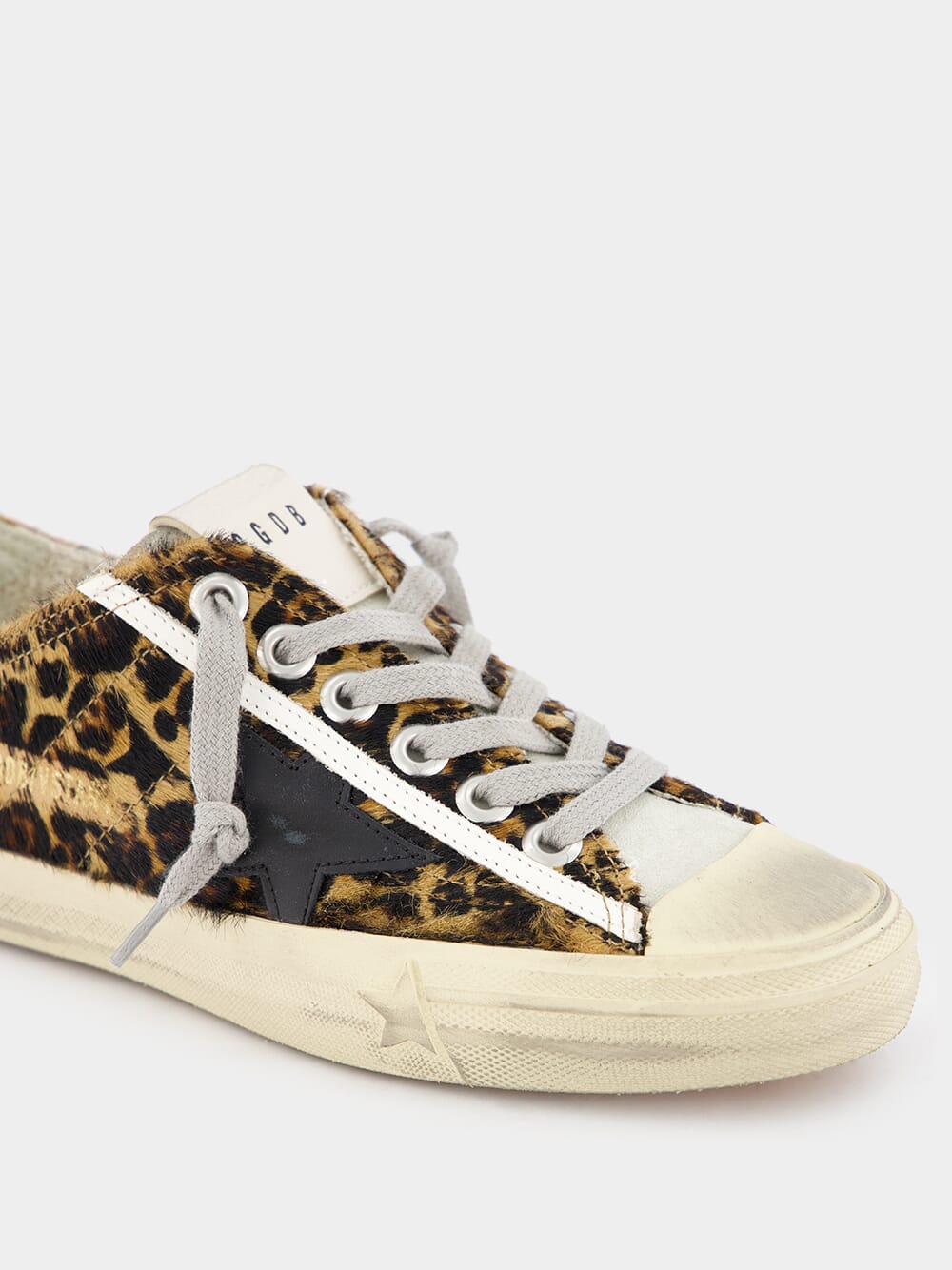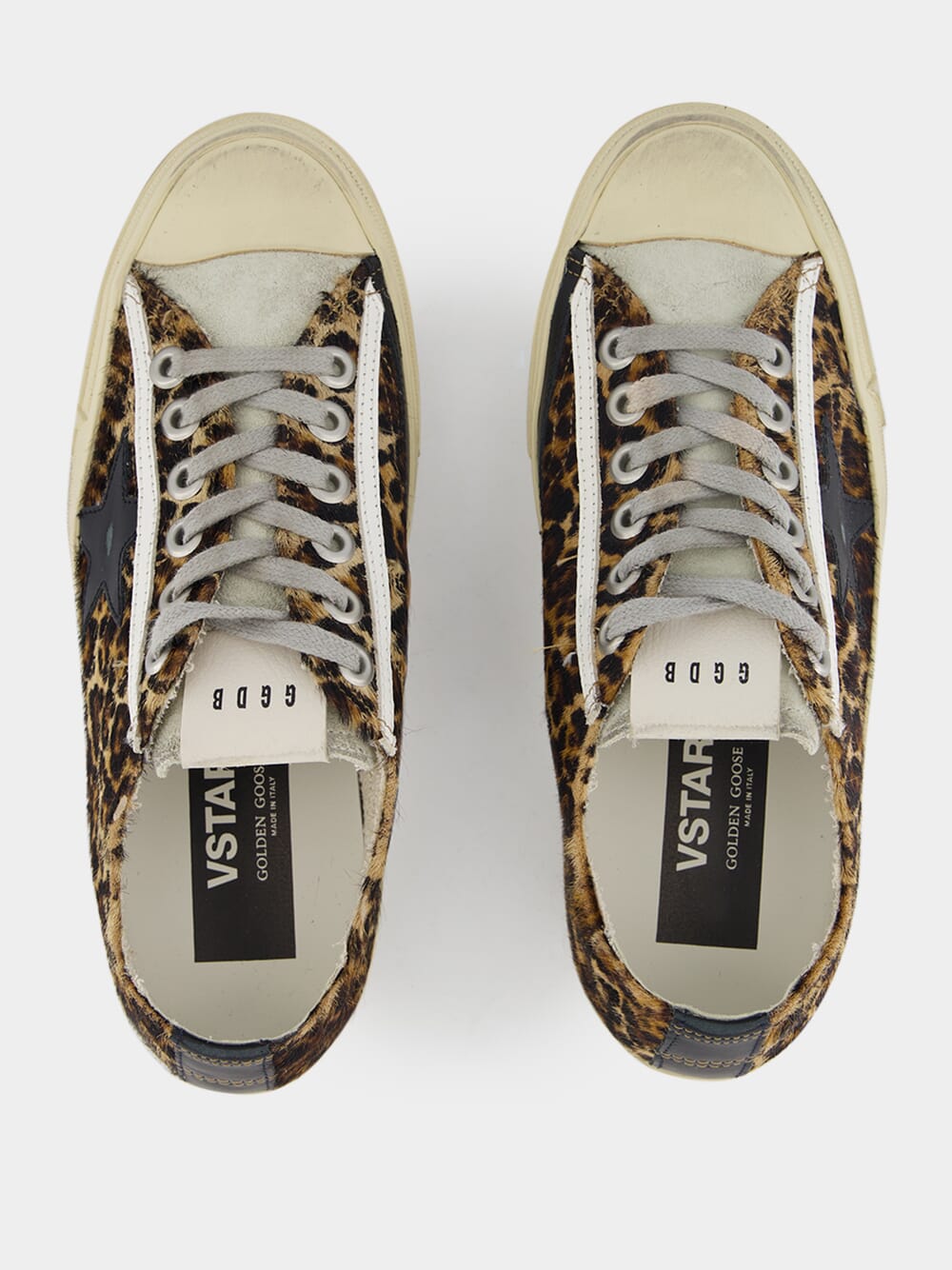 V-Star Leopard Horsy sneakers, a fusion of style and comfort. Embrace the trend with a captivating leopard print, compleMented by a striking black star and heel tab. Light gray suede inserts and laces provide a sophisticated finishing touch. These sneakers are designed to fit True To Size, but if you're a half size, we recomMend sizing up for the perfect fit.