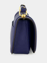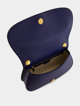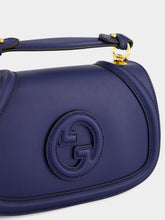 The Gucci Blondie medium top handle bag in smooth blue leather combines vintage inspiration with modern design. Featuring the iconic round Interlocking G emblem, this structured silhouette includes a back pocket, zip interior compartment, and both a top handle and detachable shoulder strap for versatile wear. Light-gold hardware and brown cotton linen lining add refinement to this Italian-crafted piece, perfectly sized for everyday sophistication.