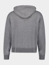 This luxurious grey hooded jacket is crafted from a soft cashmere wool blend, offering both comfort and sophistication. Featuring long sleeves, a zip closure, and ribbed cuffs and hem, it combines casual elegance with a relaxed fit. The understated design is accented by discreet branding, perfect for versatile styling.