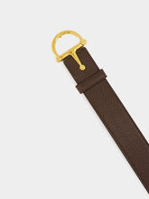 Crafted in Italy from dark brown grainy leather, this elegant belt showcases the iconic half-Horsebit buckle in light gold-toned hardware—a signature of Gucci’s equestrian heritage. Measuring 3.5 cm in width, it offers versatility to be worn at the waist or hips. Sophisticated and timeless, it’s a refined accessory that adds a polished finish to any look.