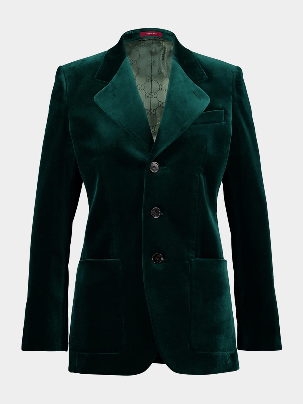 Dark Green Cotton Velvet Wide-Leg Trousers