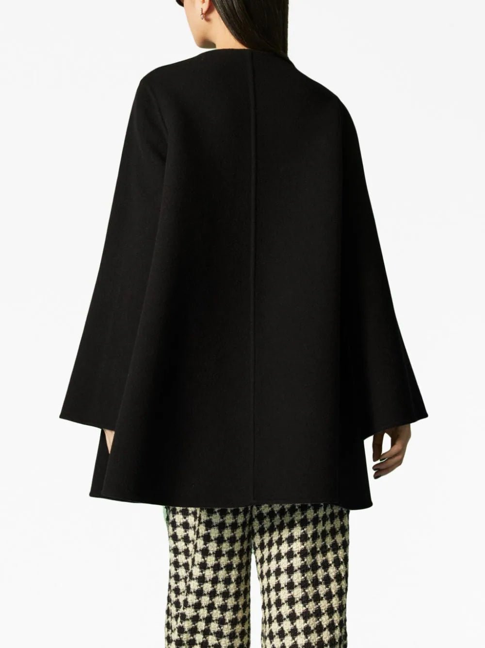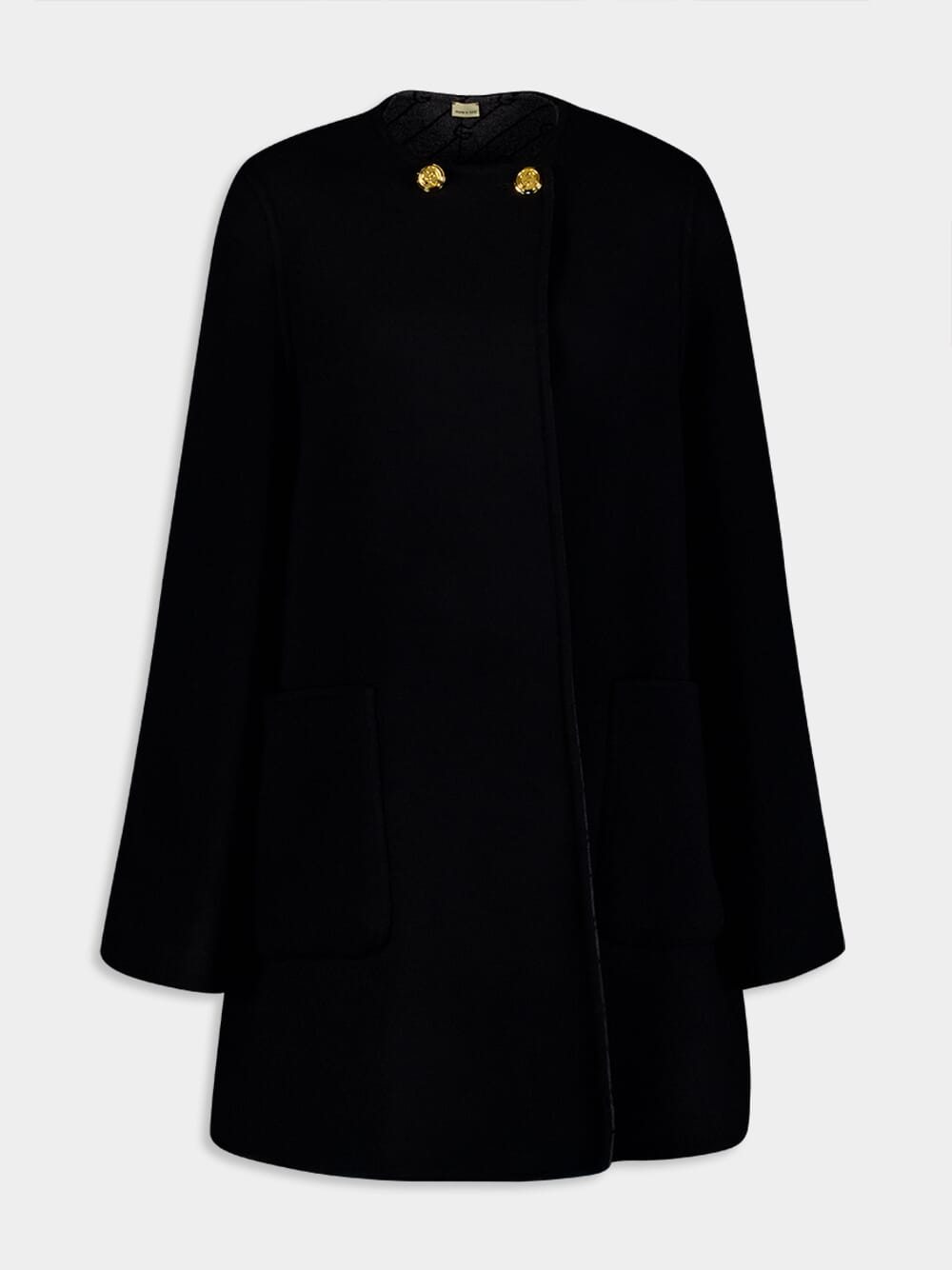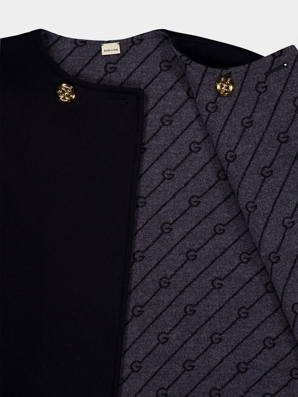 A versatile and luxurious addition to your collection. Crafted with precision, this coat features GG gold-toned buttons that add a touch of opulence. What makes this coat truly special is its reversible design, allowing you to effortlessly switch between a stunning diagonal G knit pattern and classic black wool tweed. With a round neck, two front patch pockets, and long wide sleeves, it offers both style and practicality. The secure button closure ensures a timeless and elegant look.