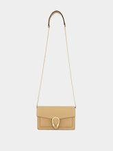 Gucci beige and ebony GG Supreme canvas shoulder bag with metal textured tiger head and sparkling Swarovski crystals closure and brown suede details.