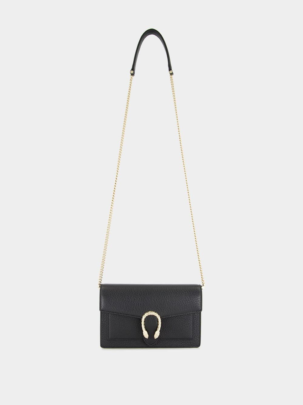 Dimensions: H 10 x W 16.5 x D 4.5 cm; Attached key ring that can attach to a separate bag; Chain shoulder strap: 60cm; This item fit a cellphone up to 69x142x7mm; Made in Italy.