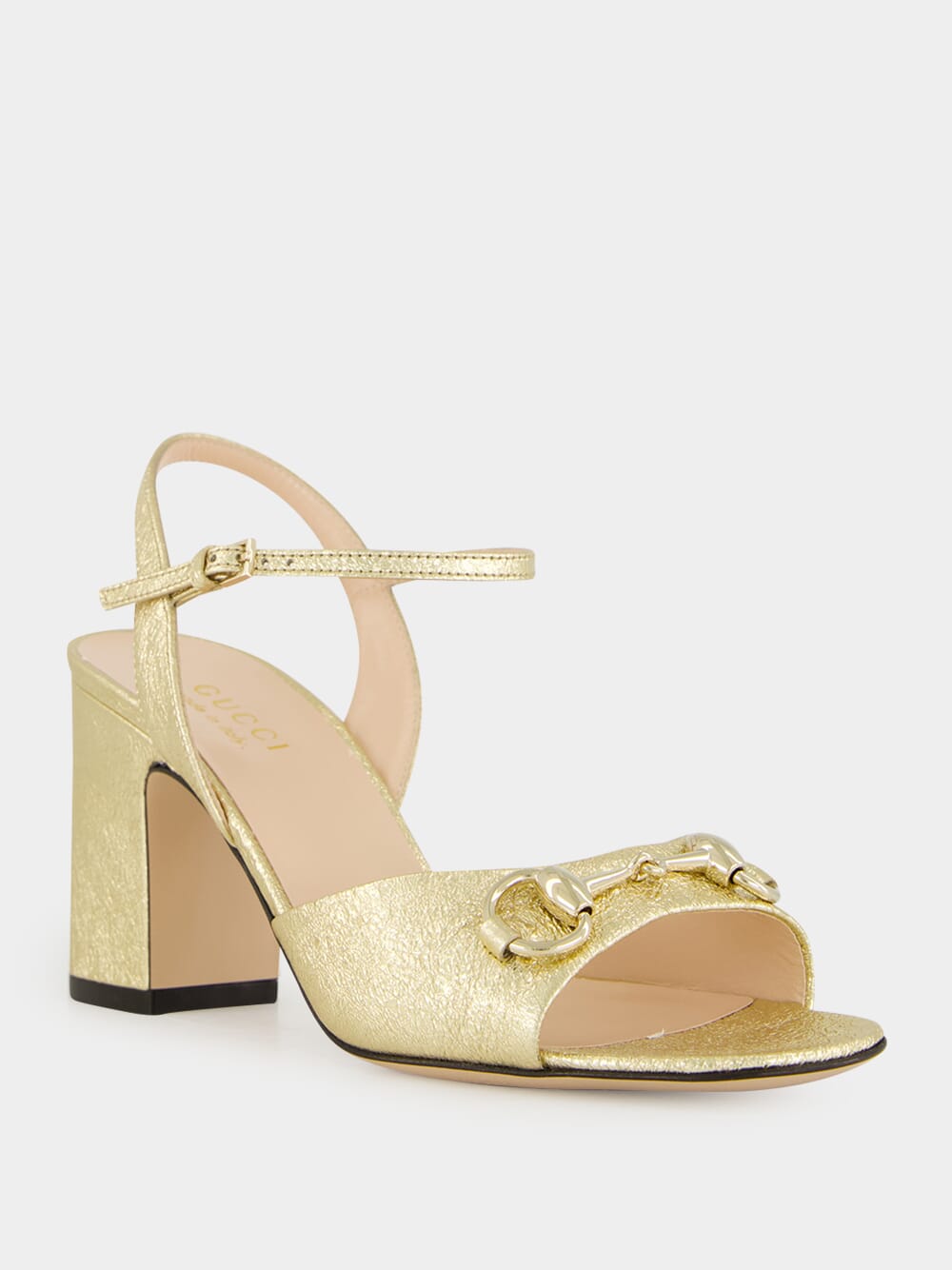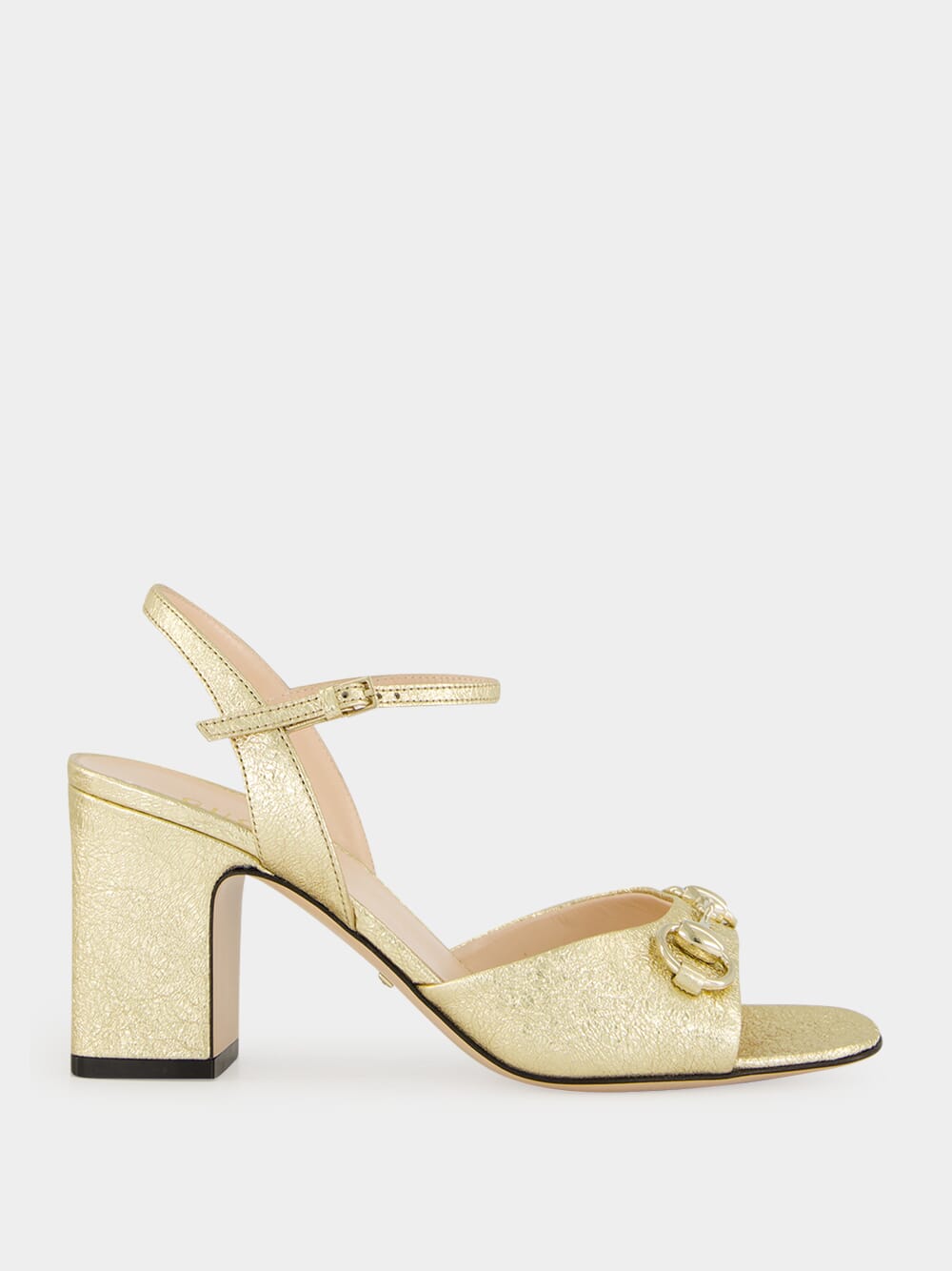 Gucci skin rose leather mid-heel pumps with Horsebit detail and sculpted black heel.