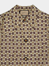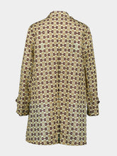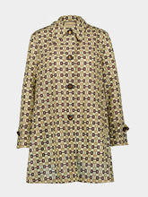 Horsebit-Print Buttoned Coat, showcasing the signature Horsebit print for timeless style. This coat features a front button fastening with elegant enamel buttons, exuding sophistication. With a pointed flat collar, long sleeves, and two front welt pockets, it's both fashionable and practical. The box-pleat design adds a touch of flair, and the straight hem completes the look.