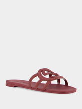 These Rosso Ancora red slide sandals embody modern elegance through iconic House symbolism. Crafted from smooth rubber, the open design features a cut-out Interlocking G motif that adds bold visual identity. With a flat silhouette and 10mm heel, the sandal ensures comfort and effortless sophistication, ideal for sunny days or resort wear. A distinctive choice for elevated casual style.