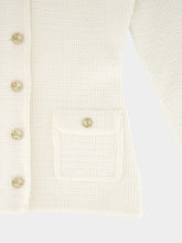 From Gucci’s Cruise 2025 Collection, this white cardigan is crafted in a fine cotton knit that exudes classic refinement. Featuring signature gold-toned Round Interlocking G buttons, a knit collar, long sleeves, and two front pockets, the piece blends elegance with everyday wearability. The soft texture and tailored cut create a flattering silhouette, while subtle stretch adds comfort. A timeless wardrobe staple, made in Italy with artisanal precision.