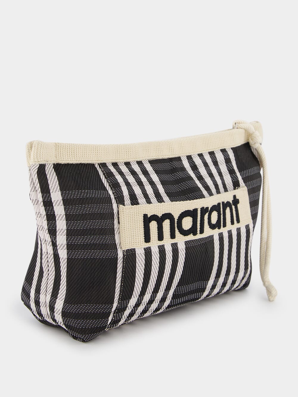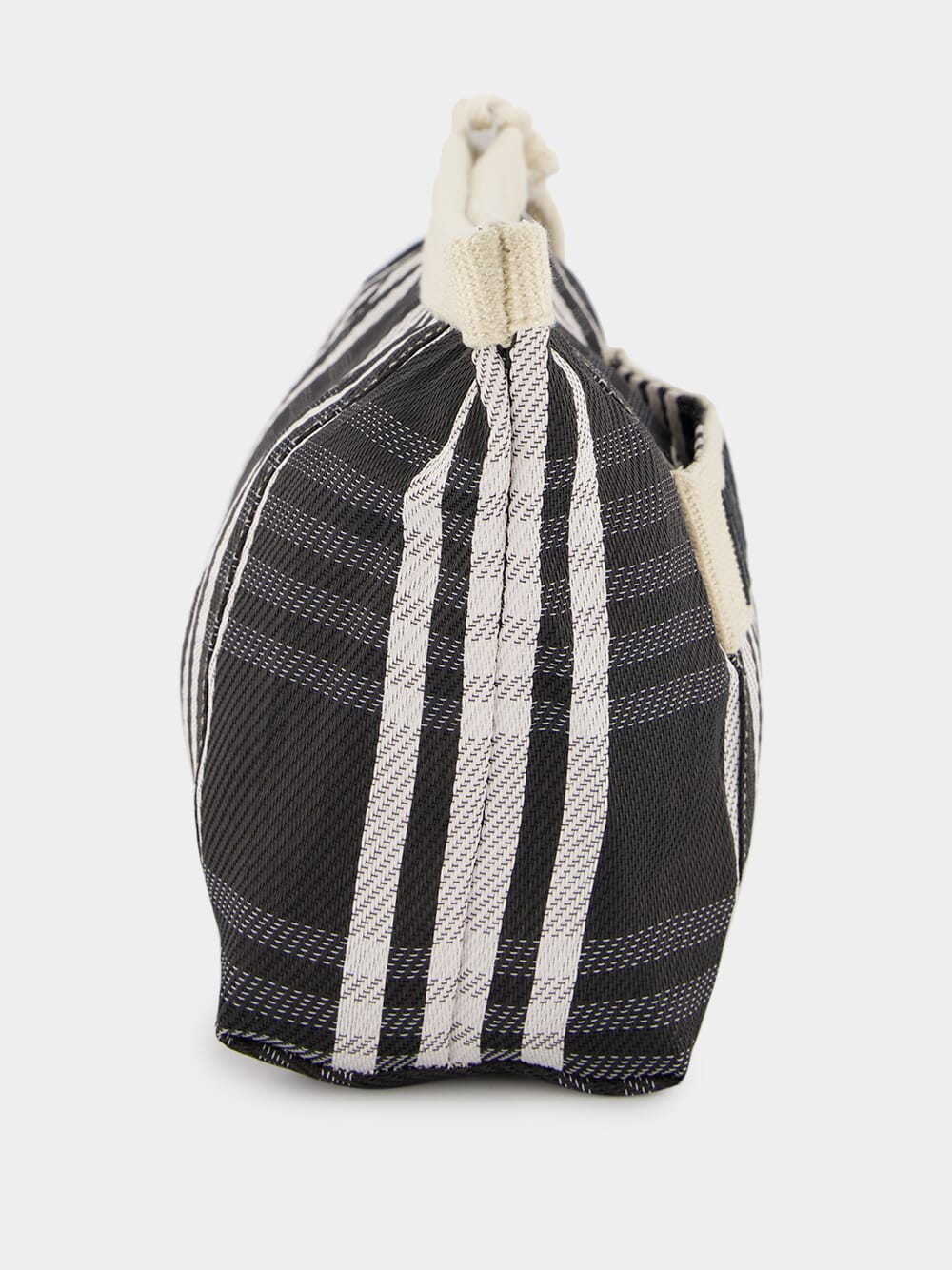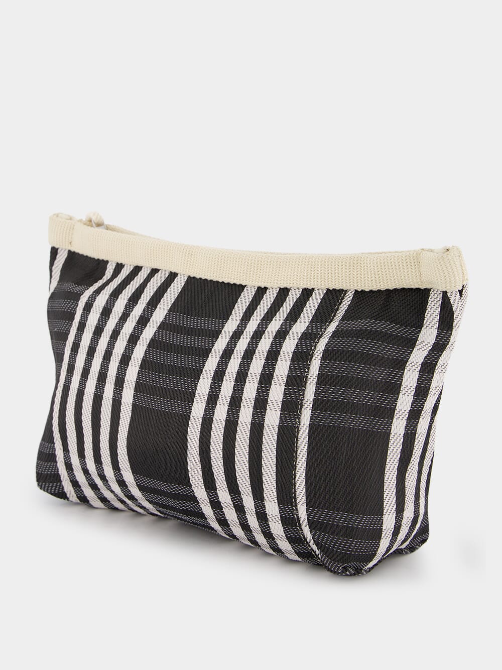 Black and white nylon pouch that's both trendy and practical. Its zip fastening ensures the security of your essentials while adding a stylish touch. This versatile pouch is perfect for organizing and transporting your daily essentials in style.