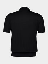 James Perse cotton short sleeve polo with single button on placket polo, side vents with twill tape for a clean finished look and step bottom hem.