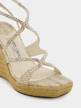These Ayla 110 wedges in Roccia feature an exotic embossed leather upper with elegant curved straps and a flattering square toe. Set on a natural raffia wedge, the design merges comfort and sophistication, ideal for summer wear. The adjustable ankle strap ensures a secure fit, while the mixed-material construction adds durability and charm.