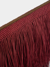 This luxurious leather pouch boasts an exquisite blend of practicality and flair. Featuring a rich, deep red hue and adorned with playful fringes, it incorporates Iraca fiber detailing for a unique artisanal touch. Its slim profile and elegant design make it the perfect evening companion.