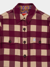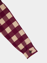 A sophisticated yet casual checked long-sleeved shirt, featuring a rich burgundy and beige color palette. Crafted from premium fabric, this shirt provides a tailored fit, perfect for layering or wearing on its own. It includes a pointed collar, buttoned front, and two chest pockets, adding to its versatile design. Ideal for transitional weather, it offers a stylish update to classic casualwear.