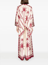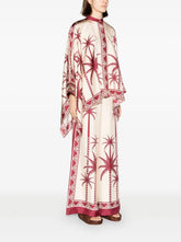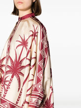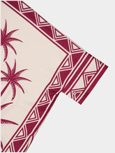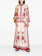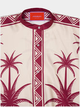 Palm Tree-Print Silk Shirt, a luxurious piece crafted from premium silk. Its captivating palm tree print and geometric-print trim create a unique and chic look. The band collar adds a touch of sophistication, and the front button fastening ensures ease and convenience. Long sleeves provide year-round versatility, and the handkerchief hem adds a playful and fashionable twist.