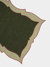 Add a touch of refined forest charm to your table with the Forest Edge Placemat. Featuring a rich, olive-green fabric that suggests the quiet grandeur of woodland, this piece is accented by a contrasting sandy-hued scalloped border, offering a balance of earthy tones. Ideal for bringing an element of the outdoors inside, this placemat is perfect for any occasion that calls for a serene and sophisticated setting.