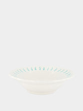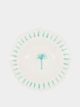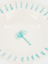 Set a serene tropical scene at your dining table with this ceramic bowl, featuring a simplistic palm design. Its refreshing palette of aqua and white, combined with a unique border, makes it a perfect choice for summery feasts or to bring warmth to everyday meals.