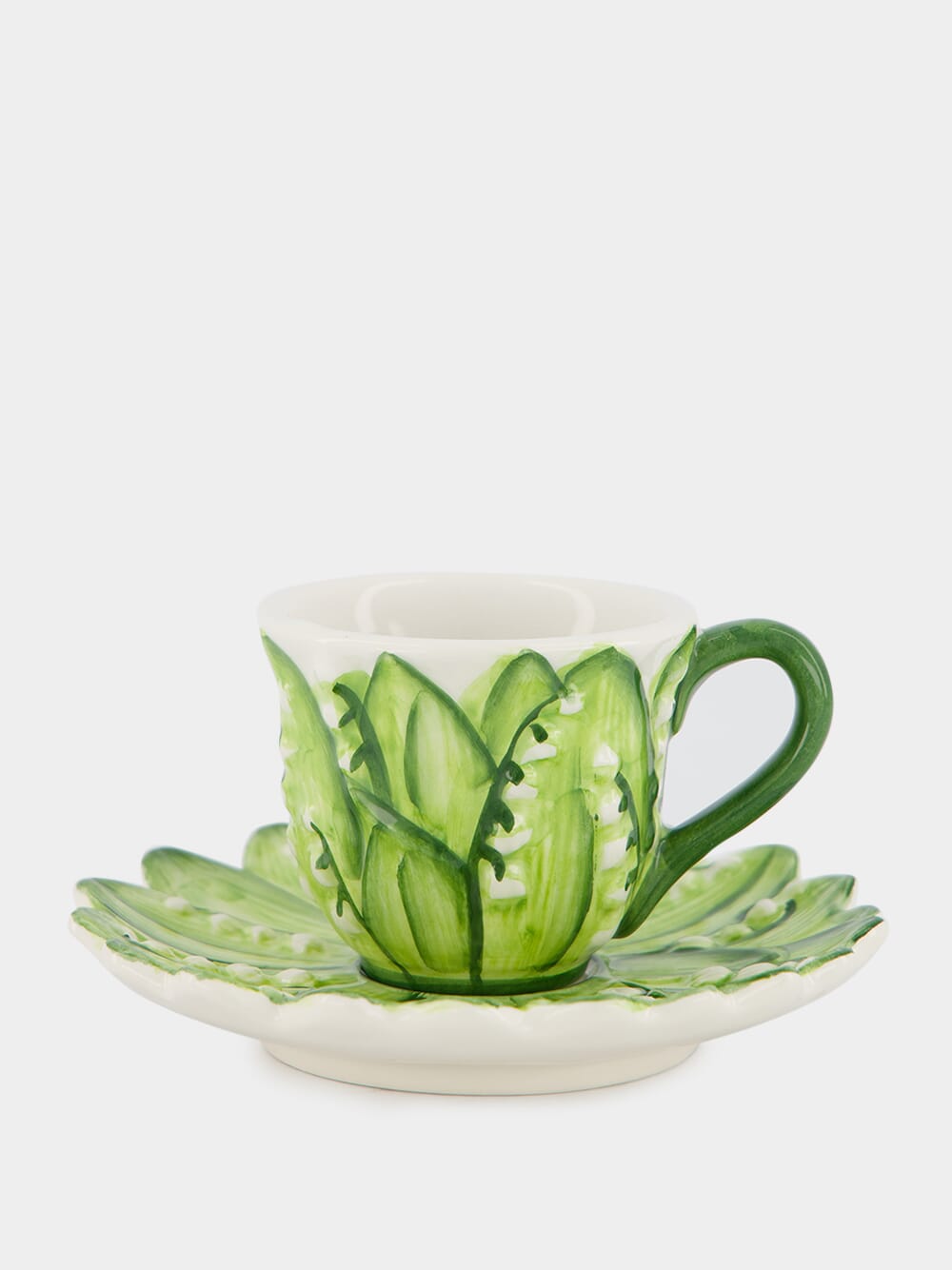 Embrace the charm of spring with this Lily of the Valley cup and saucer set. Crafted from fine ceramic, its delicate design and refreshing green palette bring a touch of elegance and serenity to your tea time.