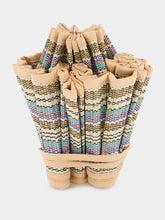 Adrift features a colour palette combination of earthy tones including chocolate, aqua, indigo, scarlet, milk-white and charcoal threads, as well as silver-metallic threads, woven intricately in a striped pattern with tan coloured fabric trimming. Lorna Murray sun Hats and Caps combine style and sun-safety. Our grass fibre woven material is certified UPF 50+, protecting your precious skin from the elements. Intentionally created for the modern lifestyle, our sun Hats and Caps can be easily folded, making them compact for travel, perfect for wherever life takes you.