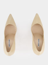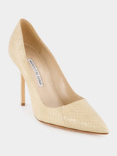 Step into elegance with these stunning Bb Snake 105mm pointed toe pumps by Manolo Blahnik. Crafted from luxurious beige calf leather with a sophisticated snakeskin effect, these pumps feature a sleek pointed toe and a high stiletto heel, standing at 105mm. The branded insole adds a touch of exclusivity and comfort. Perfect for formal events, professional settings, or a stylish night out, these pumps are designed to make a statement. Elevate your wardrobe with this timeless and versatile piece.