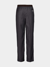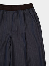 These wide-leg trousers in ardesia grey are tailored from fine striped virgin wool, blending classic suiting elegance with modern comfort. The high-rise elasticated waistband offers a relaxed fit, while subtle pleats enhance the flowing silhouette. Ideal for refined daywear or soft tailoring looks, they bring timeless sophistication to contemporary wardrobes.