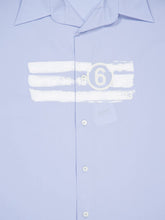 This light blue short-sleeved shirt from MM6 Maison Margiela features a relaxed silhouette with a classic button-up front. Crafted from 100% cotton, it is adorned with a subtle logo print, offering a clean yet distinctive aesthetic. Ideal for elevating casual wardrobes with effortless sophistication, it transitions seamlessly from daytime wear to smart-casual ensembles.