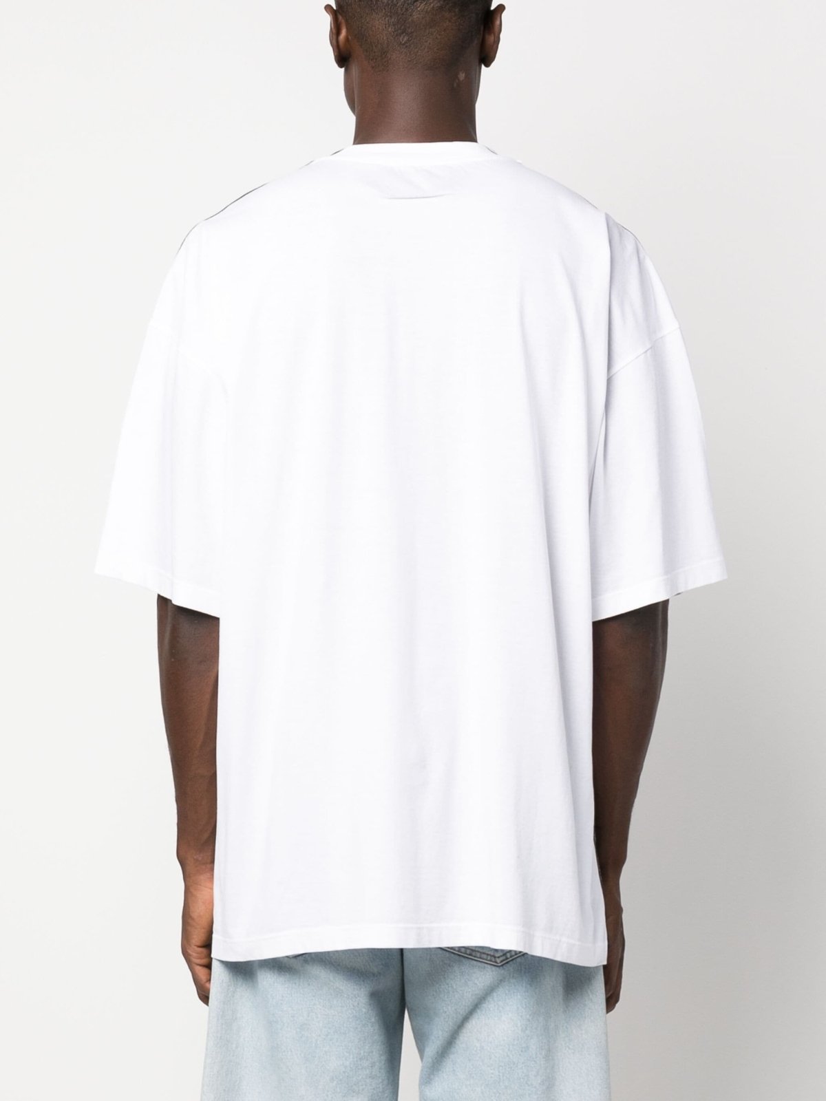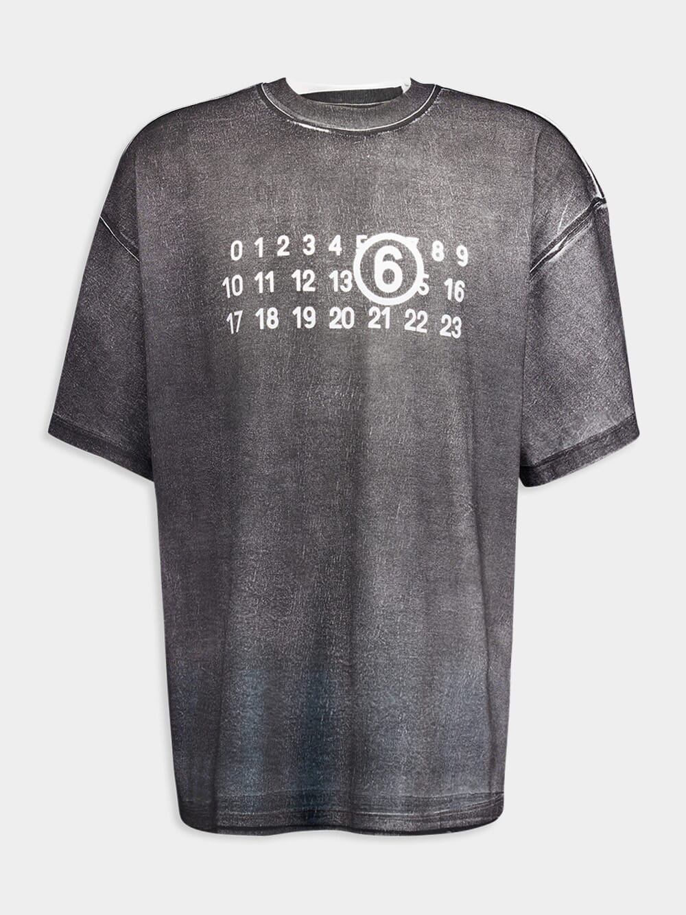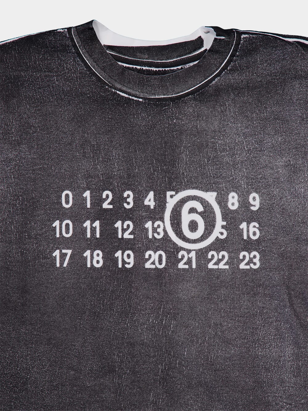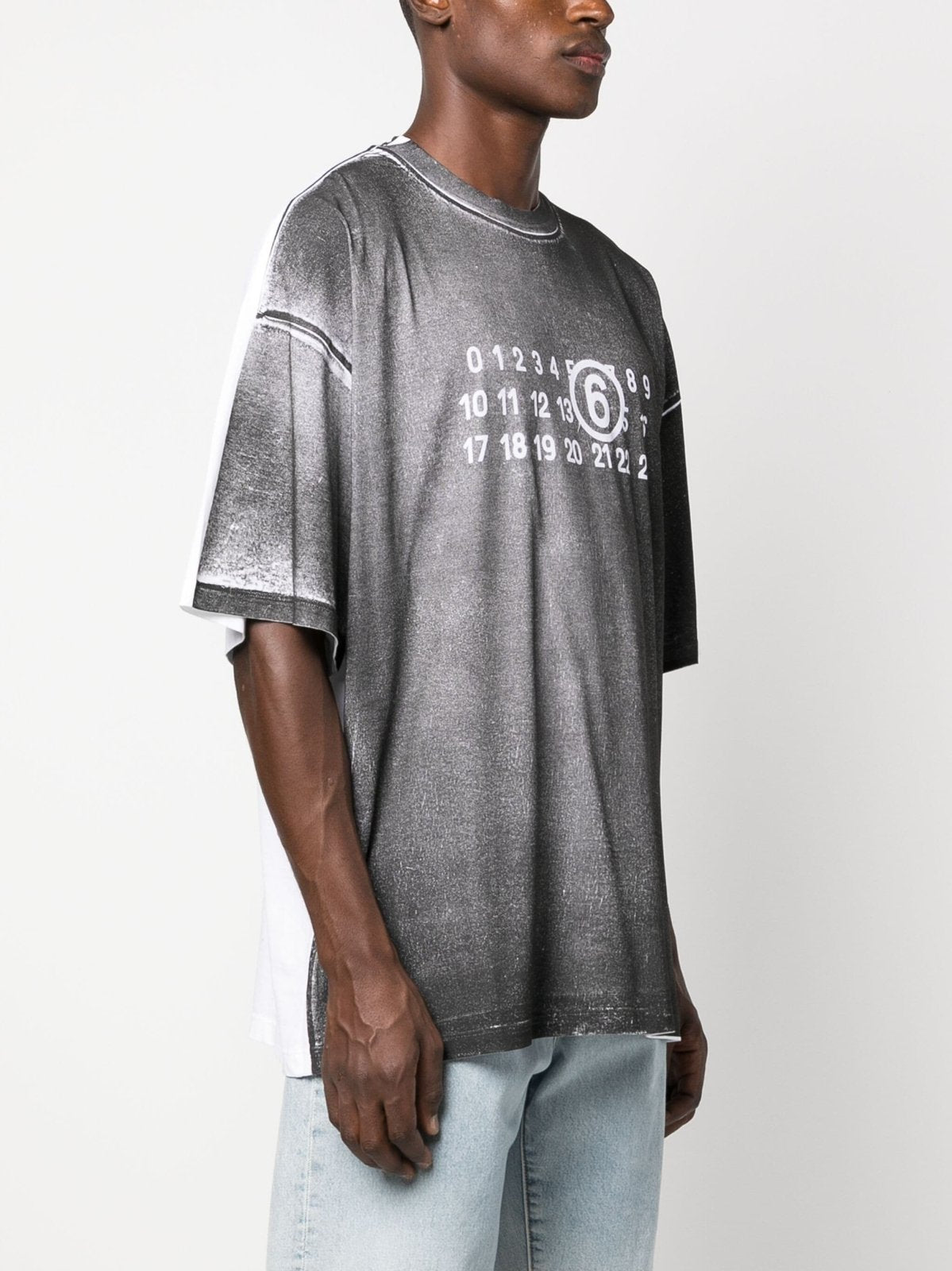 Signature Numbers Motif Two-Tone T-Shirt. Crafted from premium cotton, this tee offers superior comfort and breathability. Featuring our distinctive signature numbers motif, it adds a unique touch to your wardrobe. The classic round neck and short sleeves ensure versatility, while the two-tone design and straight hem make it a fashion-forward choice for any occasion.