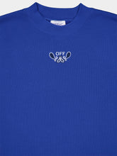 Stand out in this bold blue crewneck sweatshirt adorned with distinctive white bandana arrow patterns. The vibrant color and unique design fuse to offer a piece that's both a statement and a staple for any fashion-conscious individual.