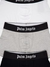 This set of three boxer trunks offers a blend of comfort and style, crafted from soft cotton with a regular fit. Each pair features a black elasticized waistband with the "Palm Angels" logo embroidered in white, providing a sleek and modern look. Perfect for everyday wear, this tripack includes versatile colors that complement any wardrobe.