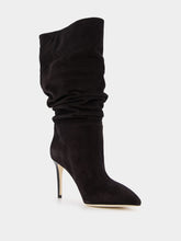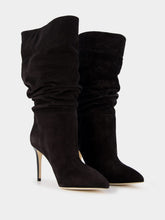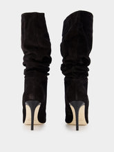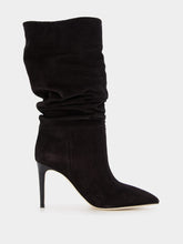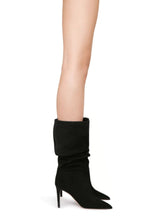 Slouchy Suede 85mm Ankle Boots, the epitome of chic and comfort. These stylish boots feature a pointed toe and an 85mm stiletto heel, perfectly balancing fashion and function. Crafted from luxurious black calf suede, they exude elegance and versatility.