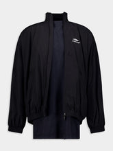 Unisex Patched Tracksuit Jacket, a versatile fashion statement with a generous fit. Crafted from high-quality CTechno poplin, this jacket features two fabric panels seamlessly assembled together, offering multiple styling possibilities. The high neck and double-ended zip fastening provide comfort and a sleek look, while two zipped slash pockets add convenience. For added uniqueness, this jacket comes with a t-shirt attached underneath at the back hem, making it a standout choice in contemporary fashion.