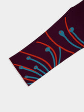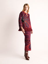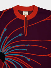 The Jade Jacquard sweater with fringes features a stunning floral pattern, blending vibrant colors with intricate design. The rich burgundy base is adorned with bold flower motifs in shades of red, blue, and black, creating a captivating visual effect. Crafted from high-quality materials, this sweater offers warmth and comfort. The fringed hem adds a bohemian touch, making it a perfect piece for autumn and winter wardrobes. The relaxed fit and long sleeves ensure a cozy wear, ideal for layering over casual or semi-formal outfits.