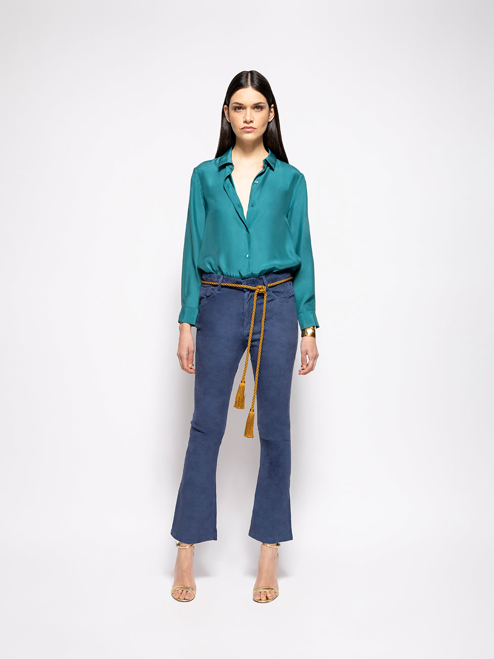 Ametista Silk Shirt showcases a classic collar, front button fastening, and long sleeves with buttoned cuffs, offering versatile style for any occasion. Its tailored fit and curved hem create a flattering silhouette, making it a must-have addition to your collection. Crafted from premium silk, this shirt combines comfort and sophistication effortlessly.