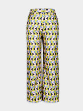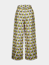 Sonia Printed Silk Trousers, a stunning piece featuring eye-popping color palettes that add vibrancy to your ensemble. These trousers boast an elasticated waistband for a comfortable and flattering fit. With a wide leg silhouette, they offer both style and ease of movement.