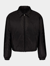 Crafted from sustainable Re-Nylon, this black padded jacket combines sleek, modern design with technical functionality. Its straight fit and minimalist silhouette are refined with a shirt-style collar, drop shoulders, welt pockets, and elasticated cuffs. The zip closure and adjustable drawstring hem offer a tailored feel, while light padding ensures comfort. Finished with a signature fabric triangle logo for a subtle branded touch.