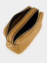 Caramel Double-Zip Leather Crossbody Bag