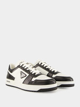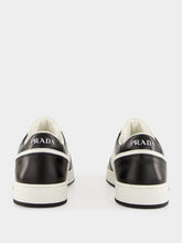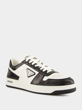 The Downtown sneakers by Prada bring a modern twist to sporty elegance. Crafted in supple calfskin leather, they feature contrasting white and black panels, metal eyelets, cotton laces, and Prada's iconic enamel triangle logo on the upper. A lightweight 35 mm rubber sole with embossed branding adds comfort and style, while the removable leather insole completes this versatile design.