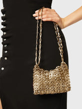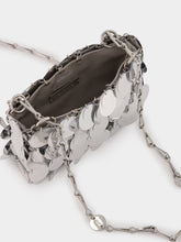 This iconic silver nano bag by Paco Rabanne celebrates the brand’s visionary artistry, inspired by the legendary 1969 design. Hand-assembled with sparkling plastic discs, this mini handbag exudes glamour and sophistication. Its adjustable chain strap, engraved with the Rabanne logo, adds an elegant touch to this dazzling piece. Lightweight and eye-catching, this accessory is perfect for making a bold statement at evening events or special occasions.