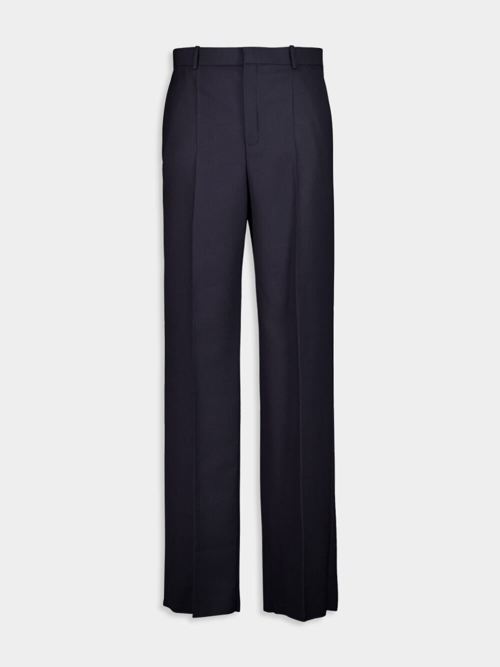 This marine blue jacket by Saint Laurent offers a refined take on classic tailoring with a distinctly modern attitude. Crafted from certified wool and fully lined in silk, the design features a sharp double-breasted closure with six buttons, enhanced by a peaked lapel and structured, padded shoulders. The oversized, elongated fit brings an effortless sense of sophistication, while thoughtful details such as flap pockets, inner welt compartments, and a double back vent complete the silhouette. A timeless yet directional piece for elevated wardrobe foundations.