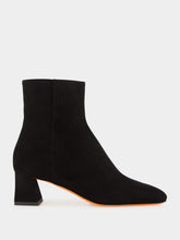 Crafted in supple goatskin leather, the Marta ankle boots by Santoni offer a refined and minimalist silhouette. Set on a sculpted block heel and featuring a softly squared toe, these boots provide both elegance and comfort. Their versatile black hue and sleek finish make them a timeless addition to any sophisticated wardrobe, ideal for elevating everyday or evening ensembles.