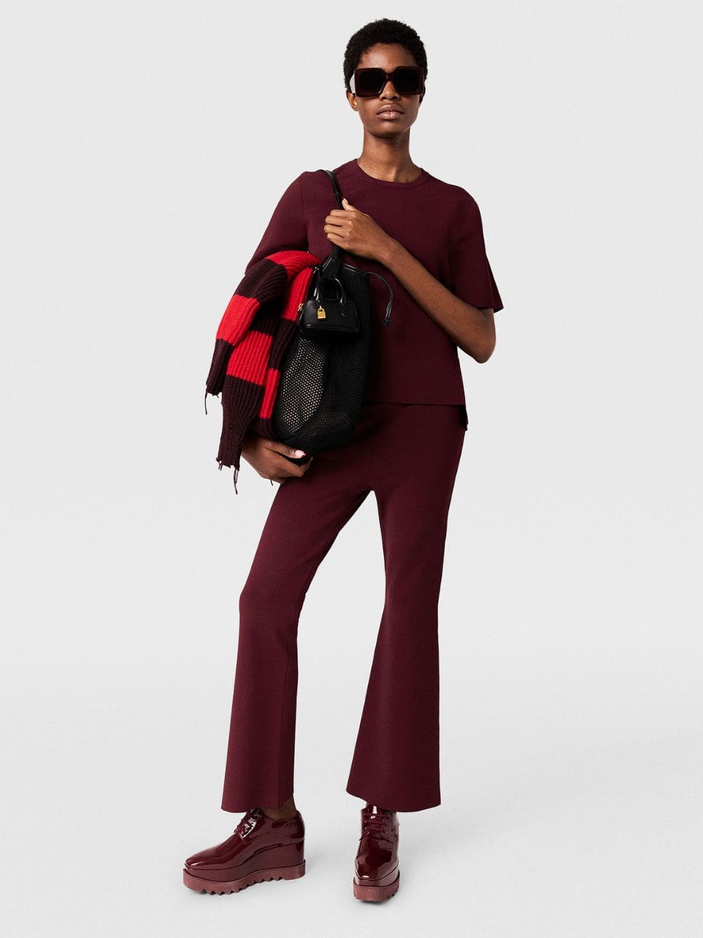 Crafted in Italy from forest-friendly compact viscose knit, this bordeaux short-sleeve t-shirt features a refined boxy silhouette with side slits and a softly curved hem. Its minimal design, rounded neckline, and fluid drape bring effortless elegance to any look. Ideal paired with matching trousers for a polished, modern ensemble.