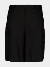 These Stone Island cargo Bermuda shorts are crafted from lightweight stretch cotton tela in black and garment dyed for a rich, deep finish. Designed with a regular fit, they feature standing hand pockets with hidden zip closures, a back slit pocket with snap fastening, and signature bellows cargo pockets with flaps on each leg—one adorned with the iconic Stone Island badge. The zip and button fly adds a functional touch, making them ideal for urban-ready, utilitarian-inspired looks.