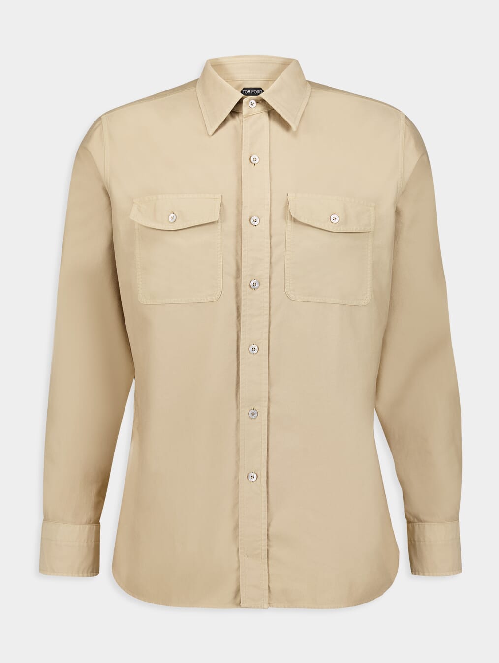 Button-Up Cotton Shirt crafted from premium cotton, it exudes comfort and breathability, making it a perfect choice for any occasion. The neutral beige hue complements various outfits, adding an understated elegance to your wardrobe. With a tailored fit and enduring style, this shirt seamlessly transitions from casual to formal settings.